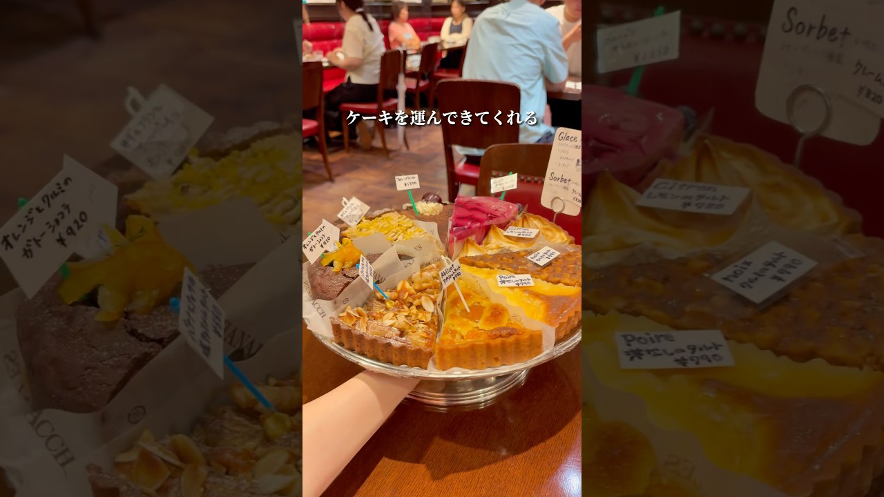 ケーキが全種類のったメニューをテーブルまで