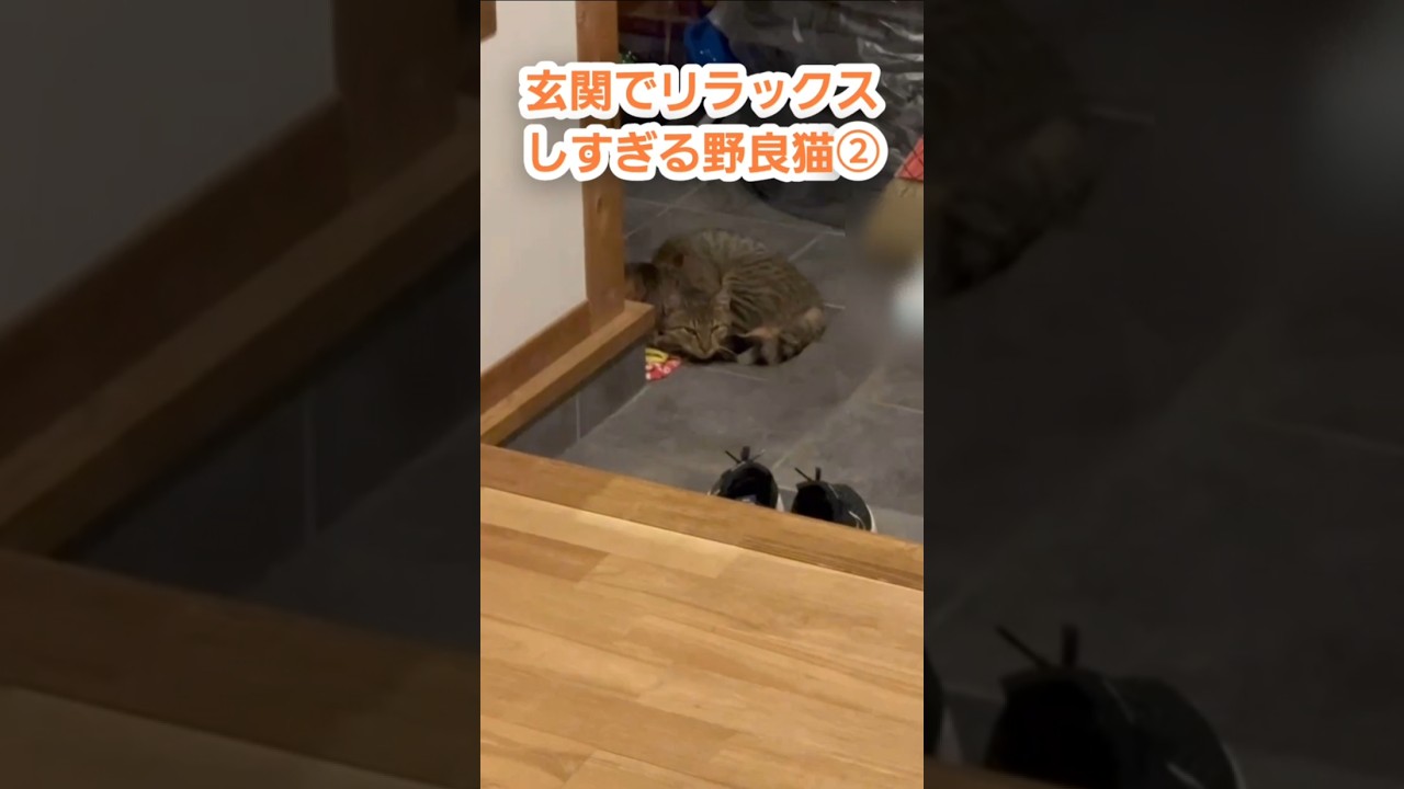 玄関でリラックスしすぎる野良猫