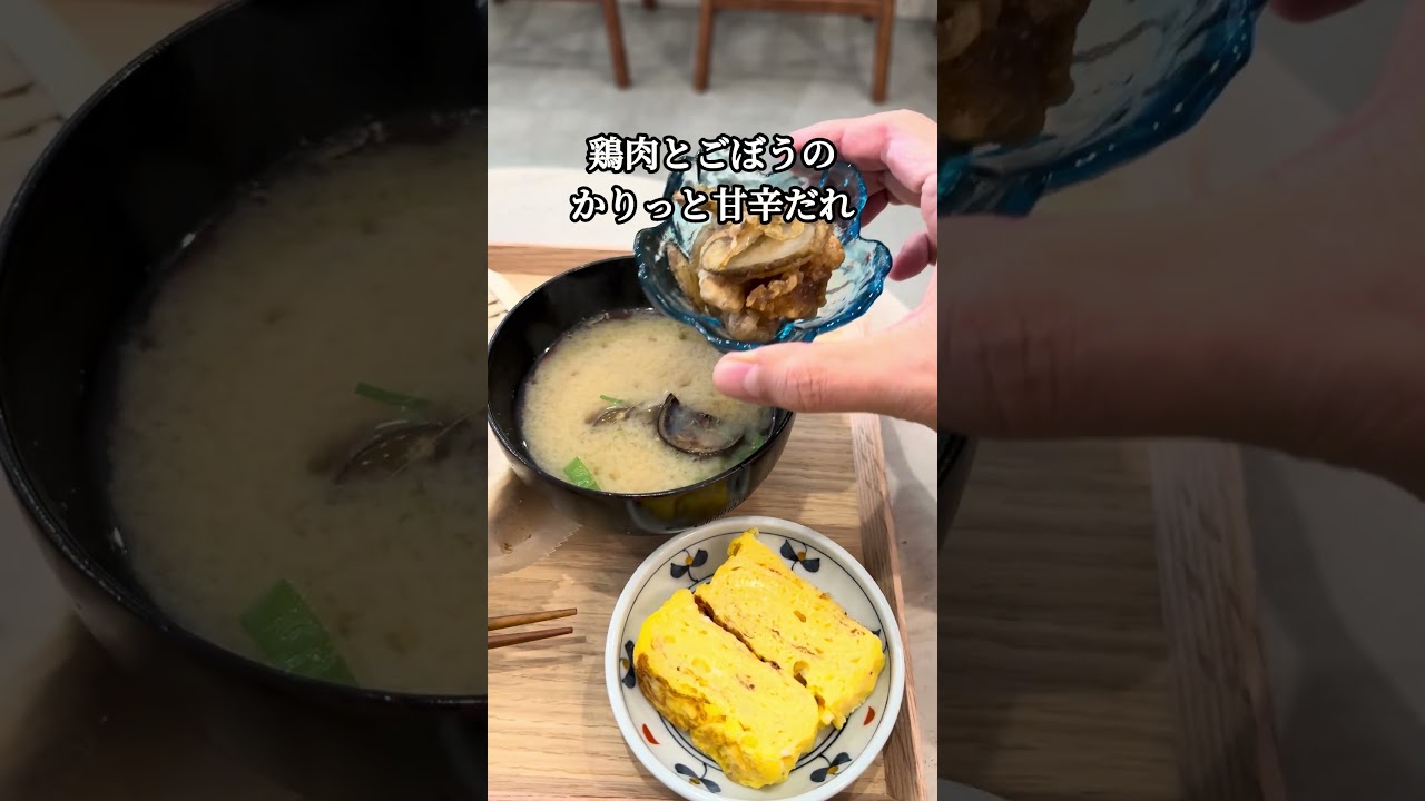 おかずは玉子焼きに、鶏肉とごぼうのカリッと甘辛だれ。
