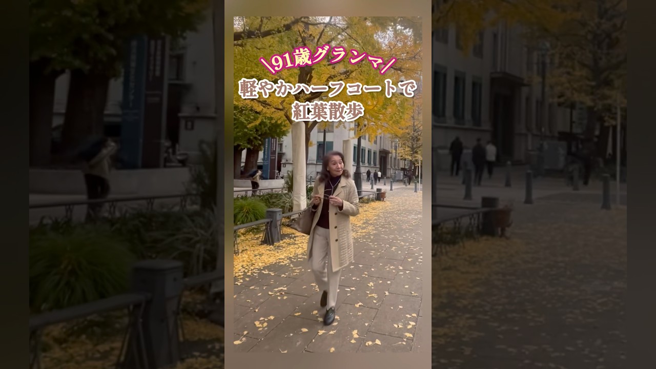 91歳グランマ💛定番ハーフコート💛おしゃれ散歩コーデ💛カラーコーディネート💛紅葉