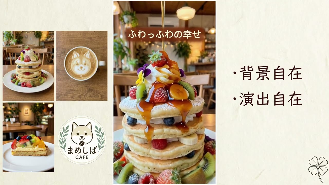 最新の生成AIで作る店舗紹介動画(マメシバカフェ) おしゃれカフェ X Facebook はてブ Pocket LINE コピー 2026.01.09 最新の動画生成AIのクォリティがすごい!写真だけで、実際に撮影したかのような動画を作ることができます。背景・演出・モデリングなど自由自在!※こちらの動画は架空の店舗紹介です