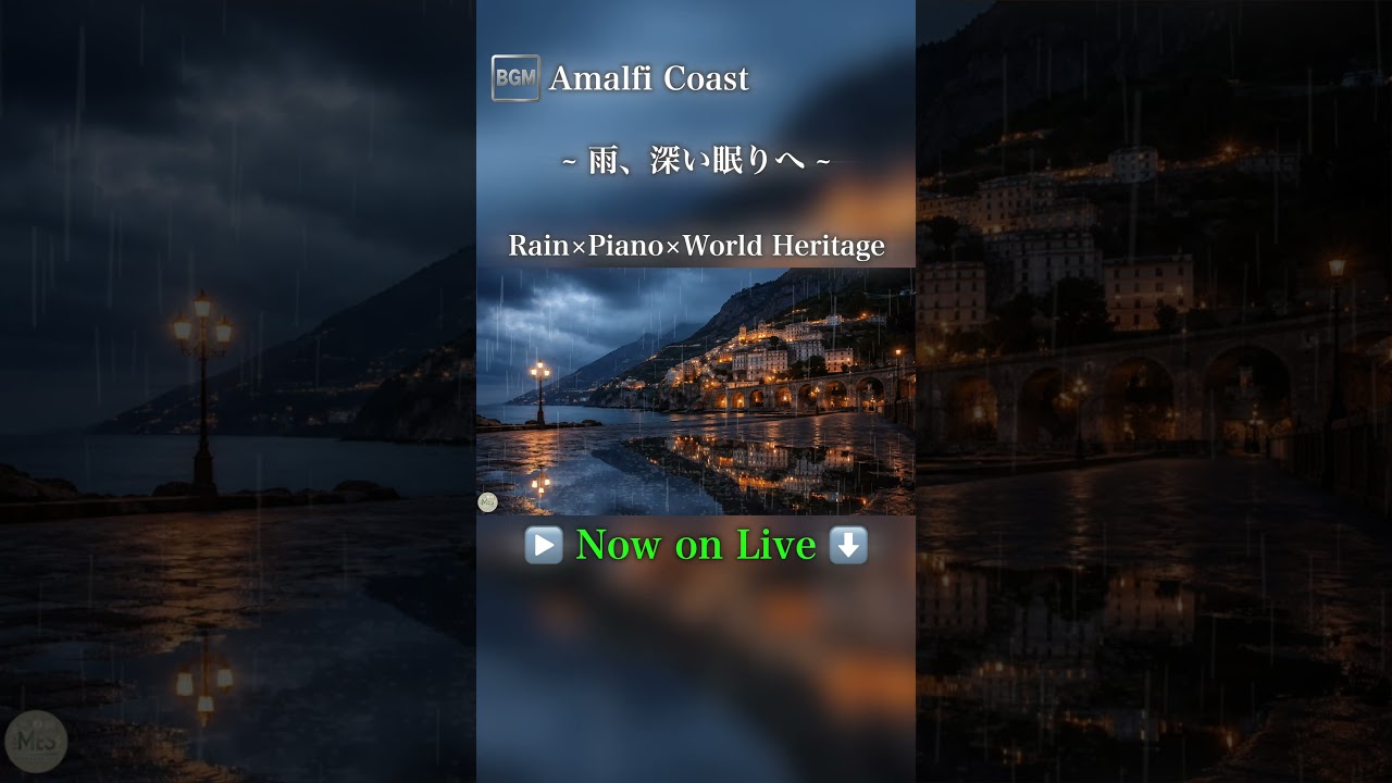 【睡眠用BGM】雨のアマルフィ海岸に響く静かなピアノ|深い眠りへ誘う癒しの夜 Live #shorts #睡眠 #2