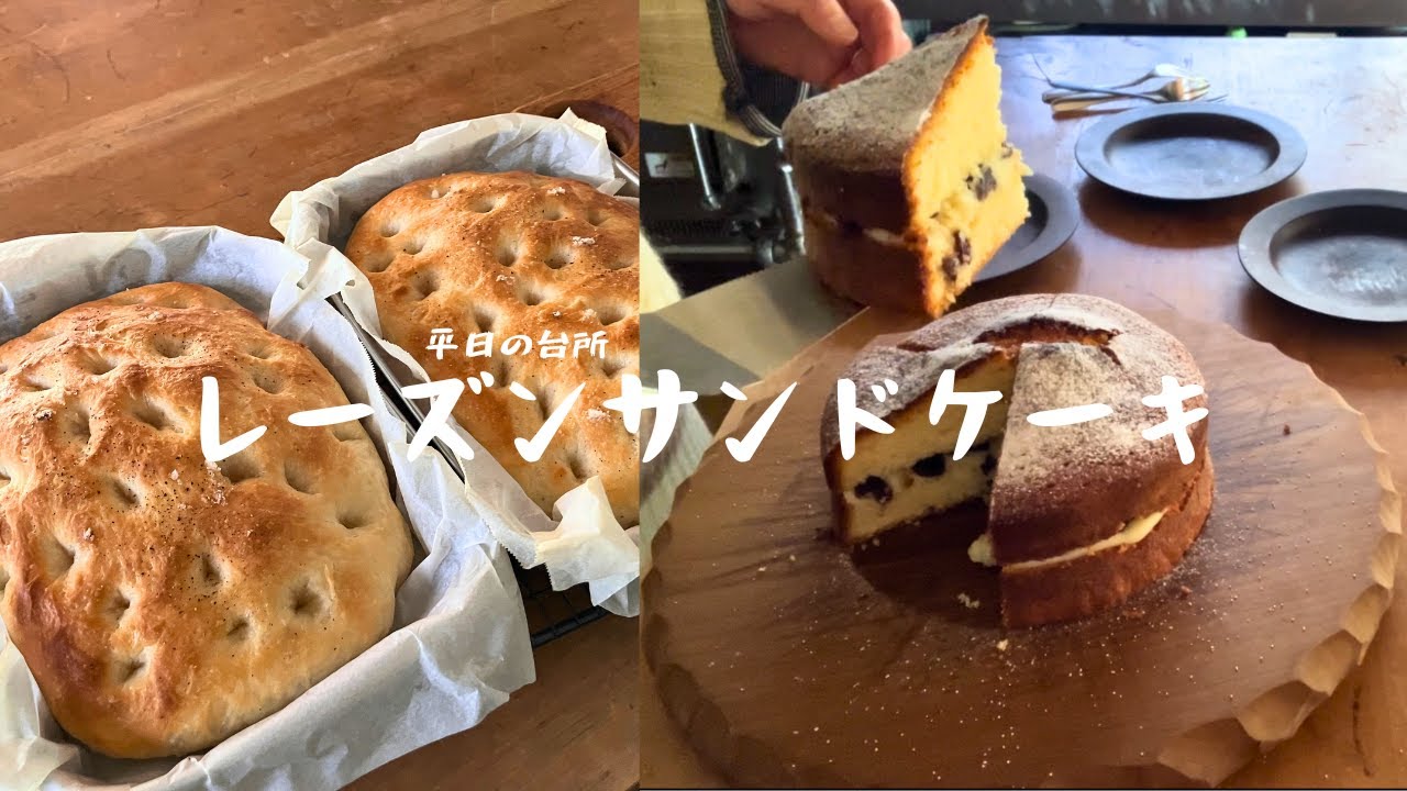 平日の台所|レーズンサンドケーキとフォカッチャ|おうちカフェvlog(レシピあり)