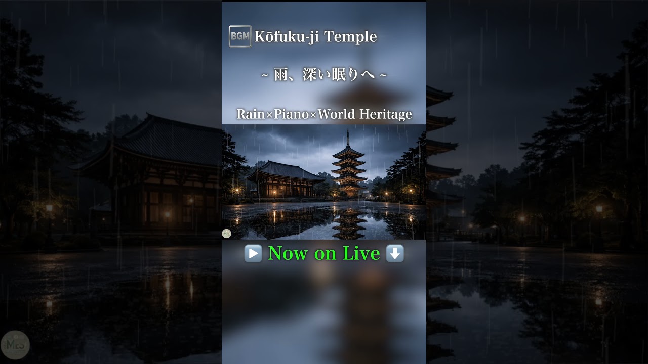 【睡眠用BGM】雨の奈良の興福寺に響く静かなピアノ|深い眠りへ誘う癒しの夜 Live #shorts #睡眠 #2