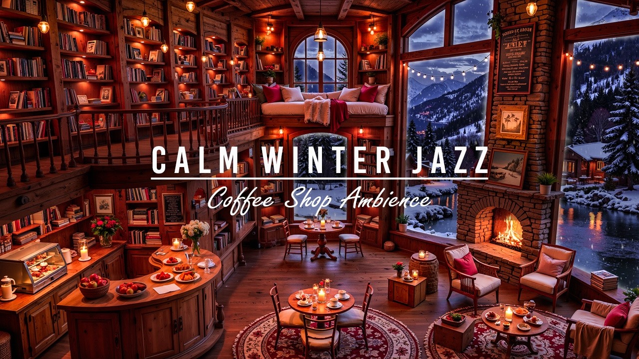 calm winter jazz music, crackling fireplace sounds, cozy bookstore cafe ambience, jazz relaxing music, relaxing winter jazz, smooth piano jazz, background jazz for work, jazz for study, cozy cafe ambience, relaxing cafe music, winter jazz instrumental, chill jazz playlist, peaceful cafe sounds, relaxing winter vibes, soft instrumental jazz, smooth relaxing jazz, warm cafe ambience
