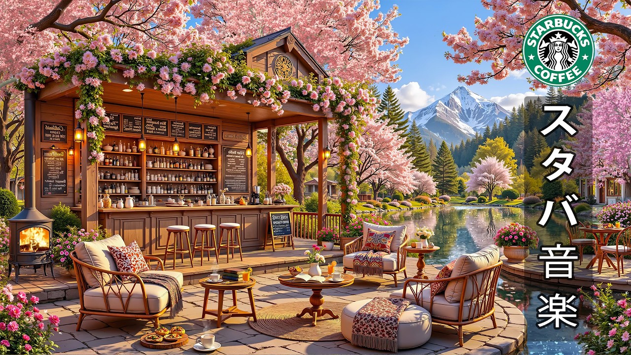 【途中広告なし】【スタバ bgm】春のスターバックスで流れる爽やかなジャズのBGM ☕ 桜の木陰にあるカフェで仕事をしていると、心地よいメロディーが集中力を高めるのに役立つ | 勉強・仕事・癒やし