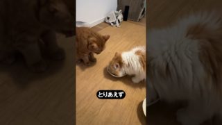 ノンちゃん(茶トラ)イリーゼちゃん(茶白の長毛)2人とも最初は仲良く食べるなぁと思ったものの、横取りしあったり横取りされまくったりです•••😓•••とりあえずイリーゼちゃんはノンちゃんの皿の半分は食べたかも•••😅食いすぎや•••😖でも可愛...