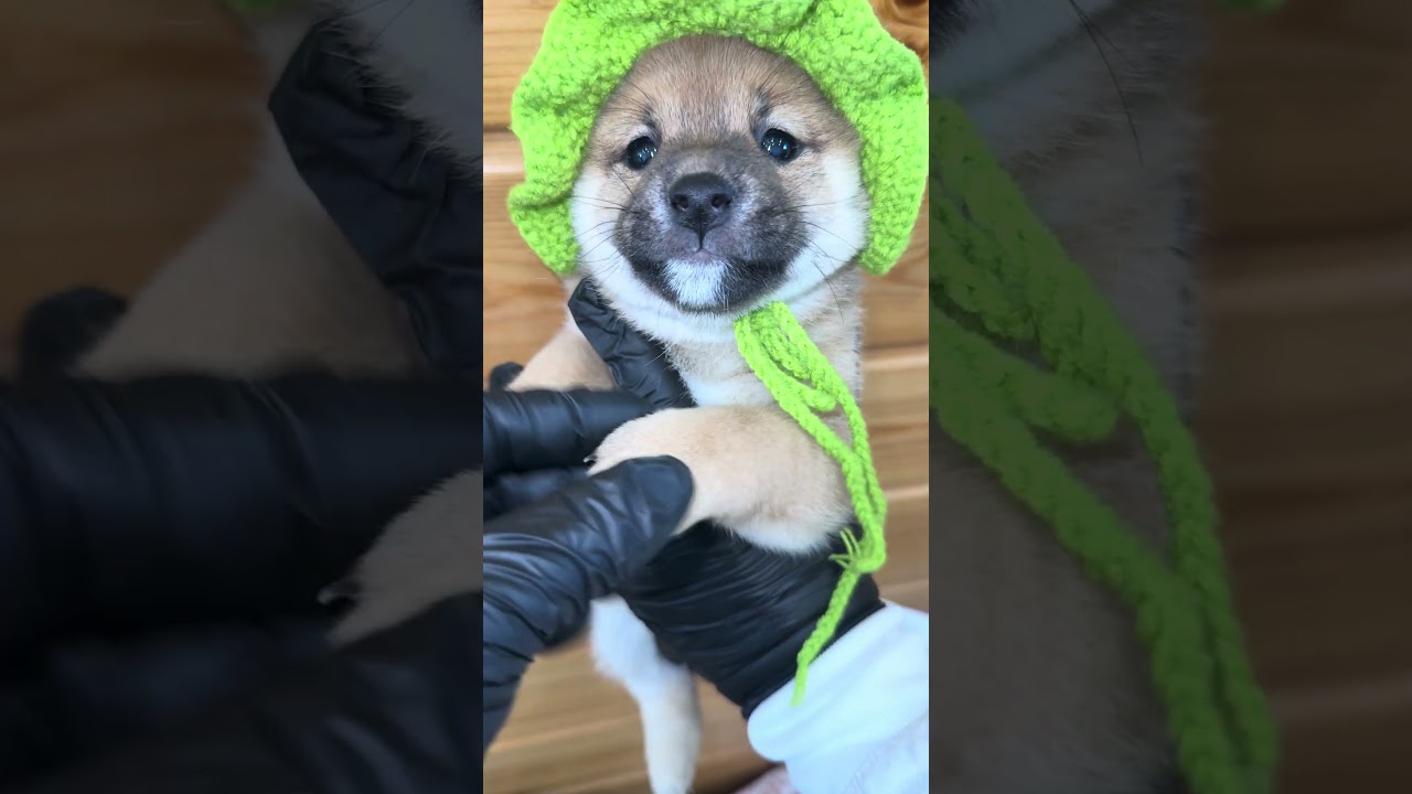 可愛いカエルさん帽子 #豆柴カフェ